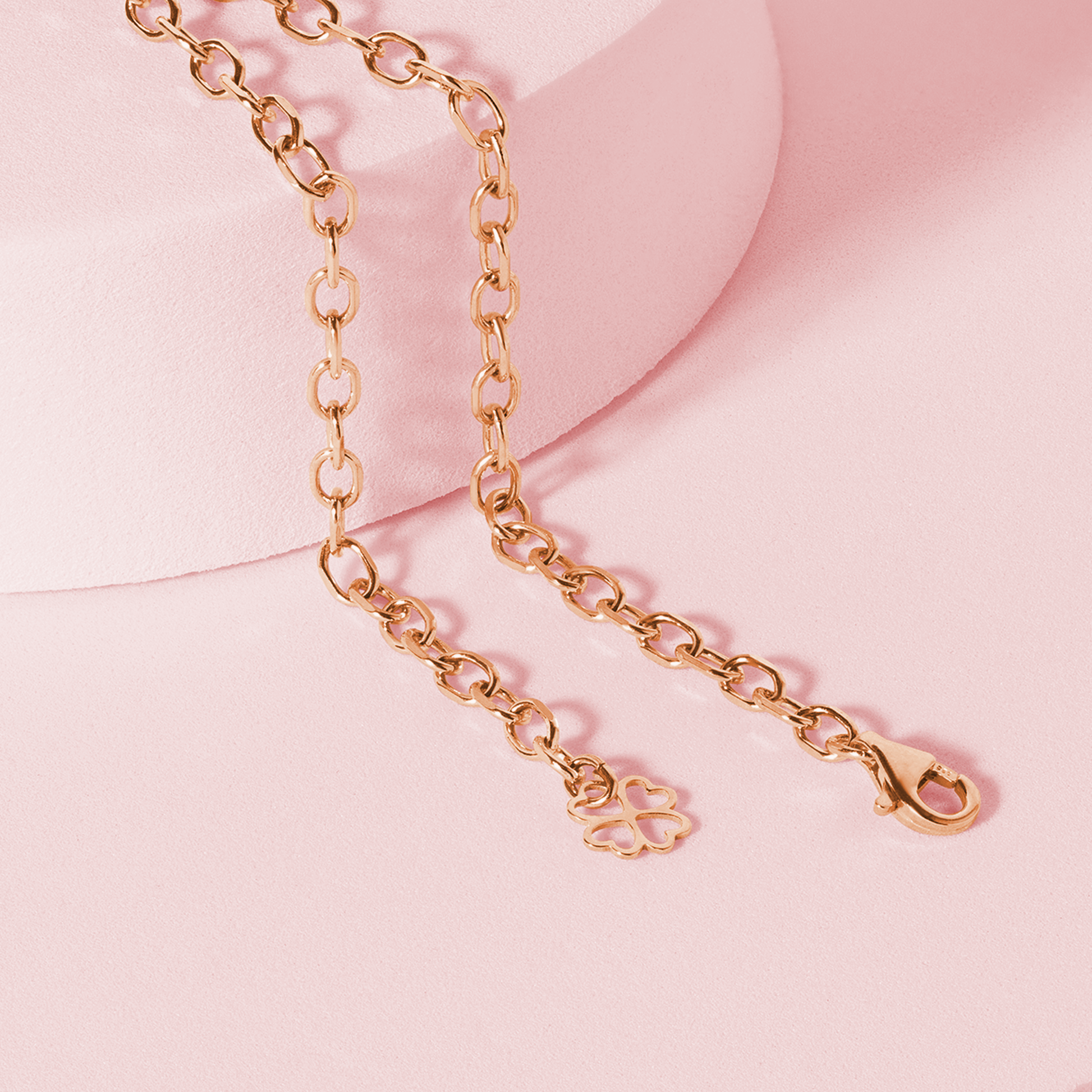Ein besonderes Detail befindet sich am Verschluss: Ein 7 mm großes Kleeblatt liegt direkt in deinem Nacken. Es soll dich einfach daran erinnern, dass dir jemand „den Rücken stärkt“ – eine kleine Stütze im Alltag. 🍀